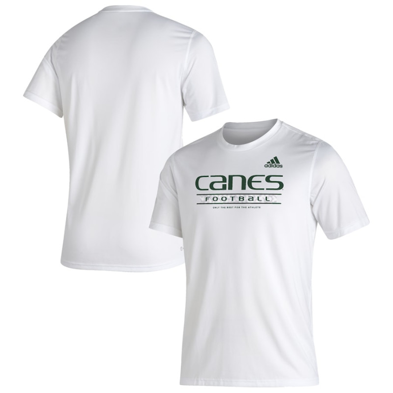 Men's - Miami Hurricanes adidas Sideline Locker Practice Creator AEROREADY White College Football T-Shirt