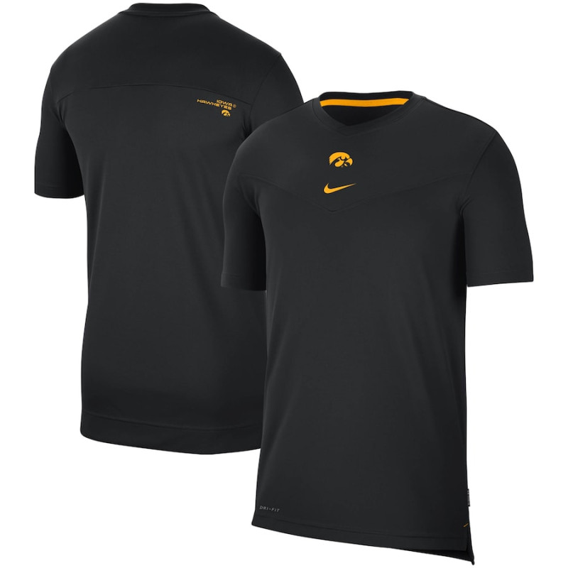 Wear the same gear as the Iowa Hawkeyes when they hit the field with this Sideline Football Coaches T-shirt. This Nike tee features striking graphics and Nike Dry fabric with Dri-FIT to wick away moisture. Whether it's game day or leg day, gear up with this sleek Iowa Hawkeyes top.