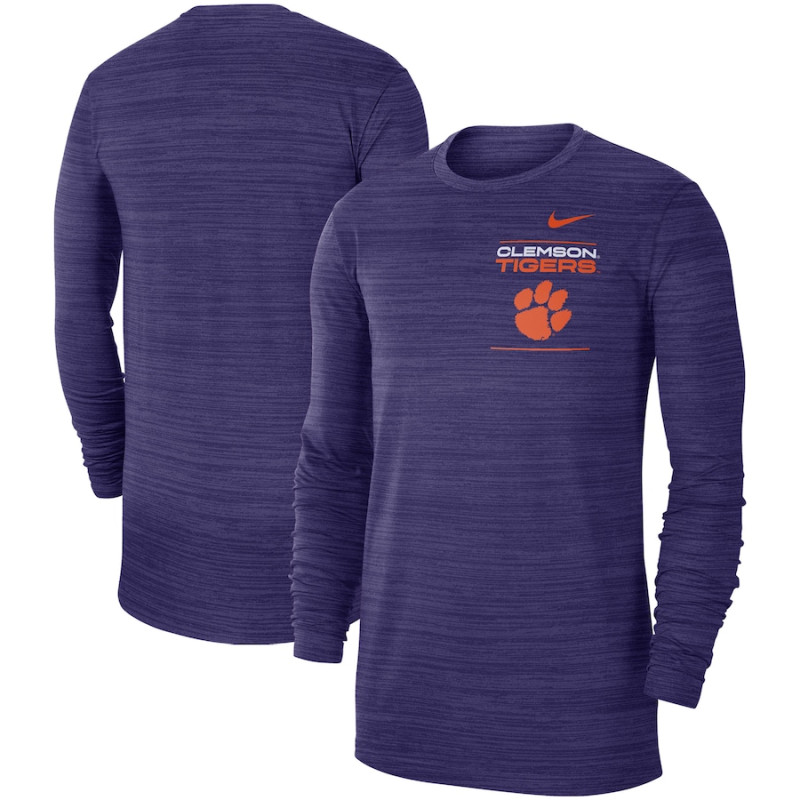 Display your die-hard devotion to the Clemson Tigers by putting on this Sideline Velocity T-shirt from Nike. Dynamic Clemson Tigers graphics highlight your loyalty, while moisture-wicking Dri-FIT technology keeps you comfortable.