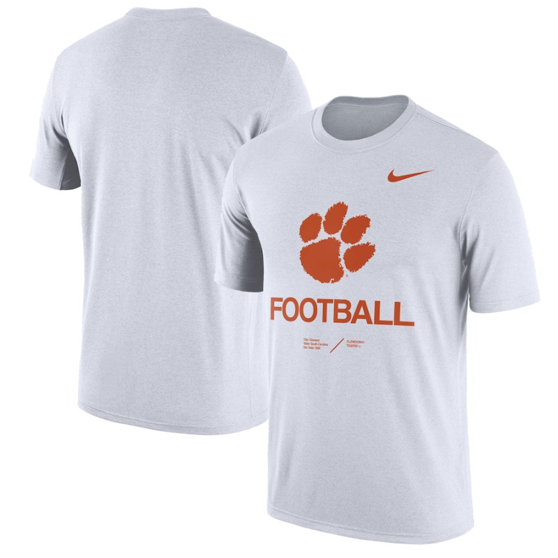 Enjoy a casual display of your unshakable Clemson Tigers spirit by adding this Nike Football Legend T-shirt to your gear collection. Along with a bold Clemson Tigers graphic across the chest, it features a bold ''football'' wordmark just below, leaving no doubt what you get fired up for. Plus, the crew neck design makes it easy to pair this laid-back tee with your go-to cap for a double dose of team devotion.