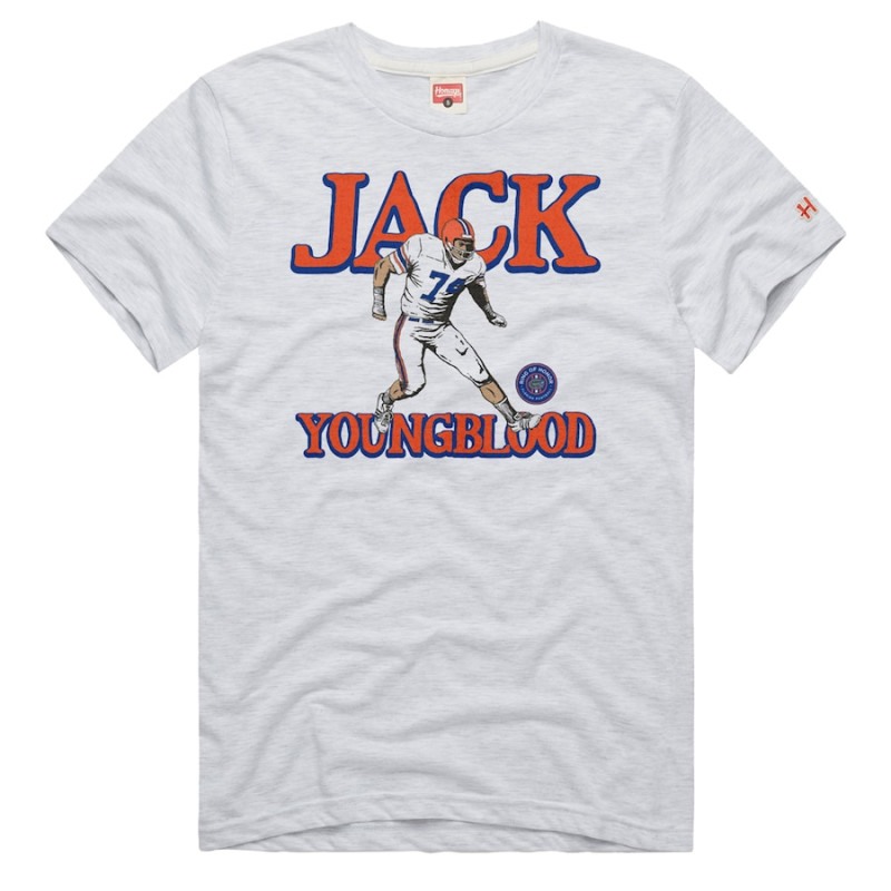 Pay homage to one of your all-time favorite Florida Gators players with this Jack Youngblood Ring of Honor T-Shirt. This Homage gear features a unique illustration of Jack Youngblood with wordmark graphics and the Gator Football Ring of Honor logo to celebrate this exciting achievement. Your unwavering Florida Gators pride will be on full display when you rock this spirited tee.