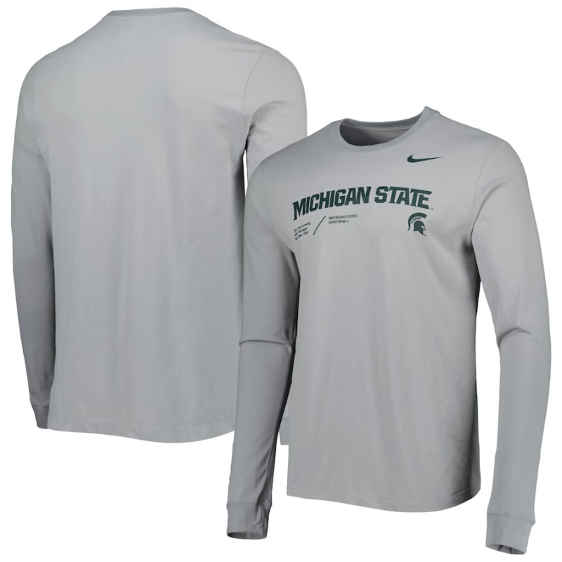 Men's - Michigan State Spartans Nike Team Practice Performance Long Sleeve Gray College Football T-Shirt