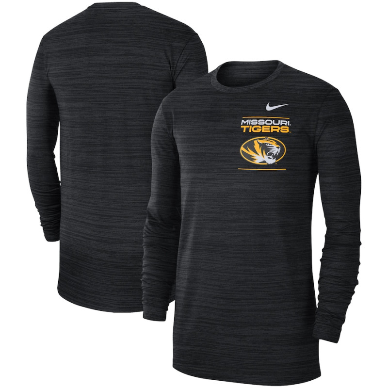 Display your die-hard devotion to the Missouri Tigers by putting on this Sideline Velocity T-shirt from Nike. Dynamic Missouri Tigers graphics highlight your loyalty, while moisture-wicking Dri-FIT technology keeps you comfortable.
