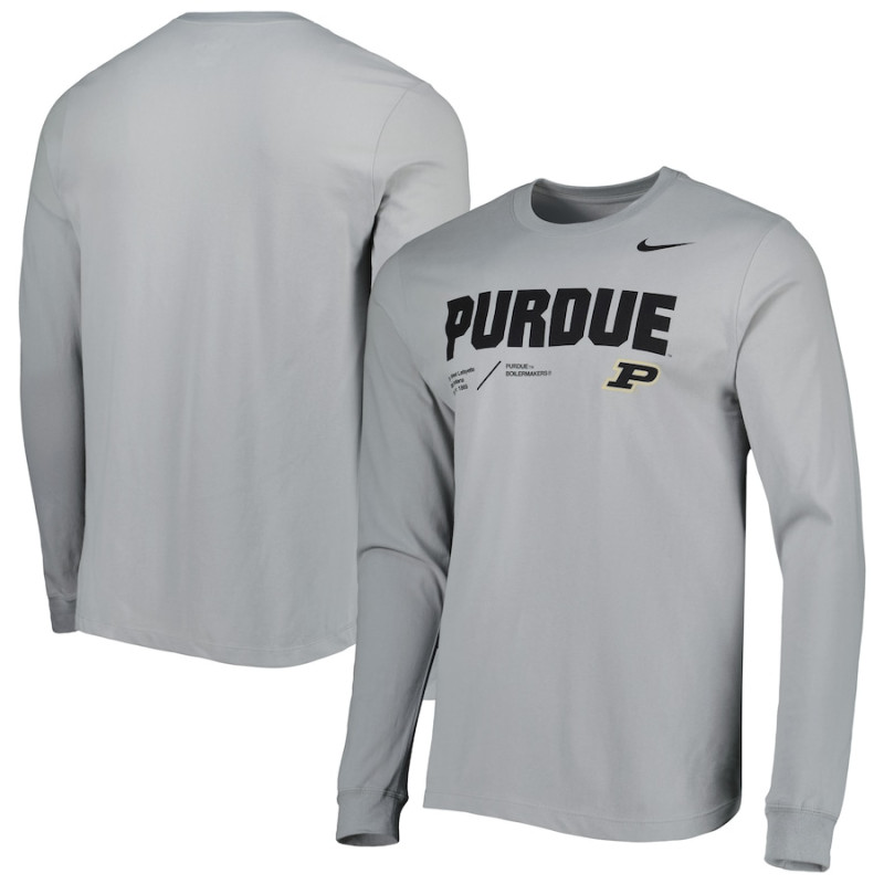 Men's - Purdue Boilermakers Nike Team Practice Performance Long Sleeve Gray College Football T-Shirt