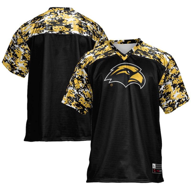 As an avid Southern Miss Golden Eagles fan, you never miss a minute of the action. This Football Jersey is perfect for cheering your team to victory, whether you're watching from inside the stadium or at home on your couch! This spirited jersey features bold graphics that ensure your Southern Miss Golden Eagles pride is on full display.