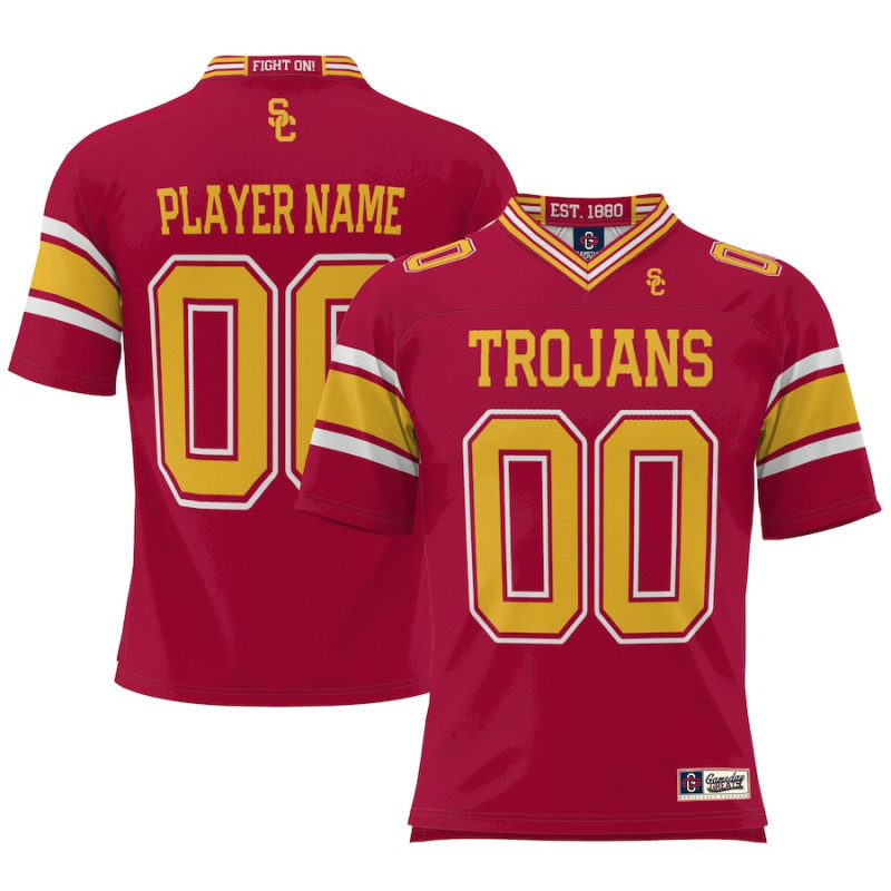 Support your favorite USC Trojans player with this ProSphere NIL Customize Football Jersey! The jersey will be customized with the name and number you pick from the Name, Image and Likeness roster. It's made from 100% polyester with sublimated graphics and a unique USC Trojans design that is perfect for game day.