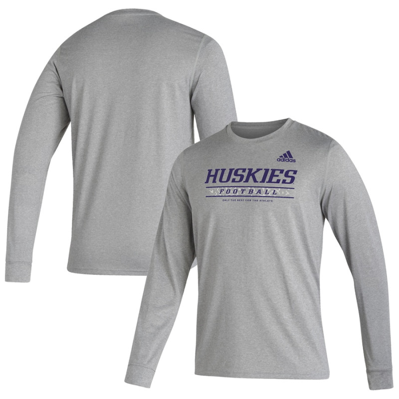 • Men's - Washington Huskies adidas Sideline Creator Practice AEROREADY Long Sleeve Heathered Gray College Football T-Shirt