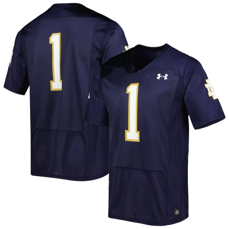 • Men's - #1 Notre Dame Fighting Irish Under Armour Team Wordmark Replica Navy College Football Jersey
